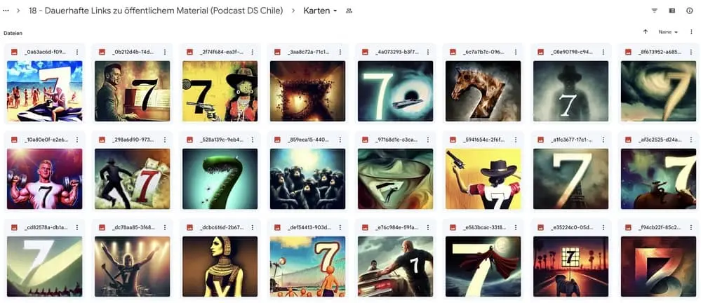 Die Lust am Sammeln ist bei Kindern und Jugendlichen gleichermassen stark ausgeprägt. Das beobachte ich bei uns an der Schule. Deshalb kam mir die Idee, für bestimmte Leistungen Karten zu vergeben. Da für Schüler in Chile die Zahl 7 magischen Charakter hat – es handelt sich um die Bestnote – habe ich mit dem Bildgenerator von Bing, der auf KI, dem Algorithmus DALL·E, basiert, viele Karten erzeugt, die die Zahl 7 in verschiedenen Kontexten darstellt. Hier können Sie sich die Karten herunterladen.