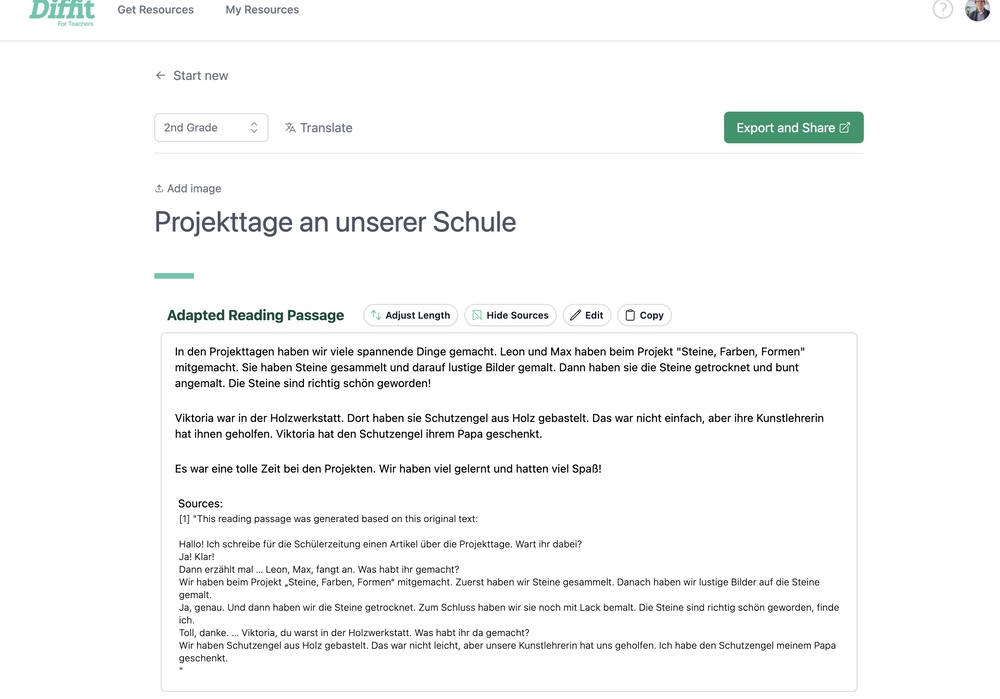 Stell dir vor, du könntest auf einfache Weise Lesetexte erstellen und anbieten, die genau auf die Bedürfnisse deiner Schüler zugeschnitten sind. Egal, ob du nach leicht verständlichen Geschichten suchst, oder anspruchsvolle Texte in verschiedenen Niveaus lesen (lassen) möchtest, dieses Tool macht es möglich! Mit nur wenigen Klicks kannst du deinen bevorzugten Schwierigkeitsgrad, Textgrundlage, Thema und vieles mehr auswählen. Dieses DaF-Textdifferenzierungstool öffnet die Tür zu maßgeschneiderten Lernmaterialien und bringt dich deinem Ziel näher, Deutsch stressfreier und für alle noch erfolgreicher zu vermitteln.