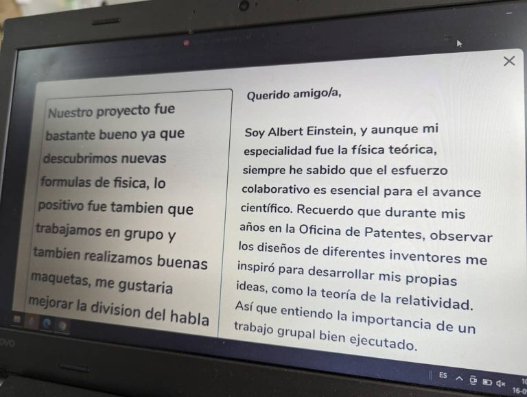 El Curipod que programamos para ello: cada estudiante recibe comentarios personalizados de la IA desde la perspectiva de Albert Einstein en función de sus comentarios sobre el proyecto 🙂 – puede verse aquí y puede personalizarlo y utilizarlo usted mismo.